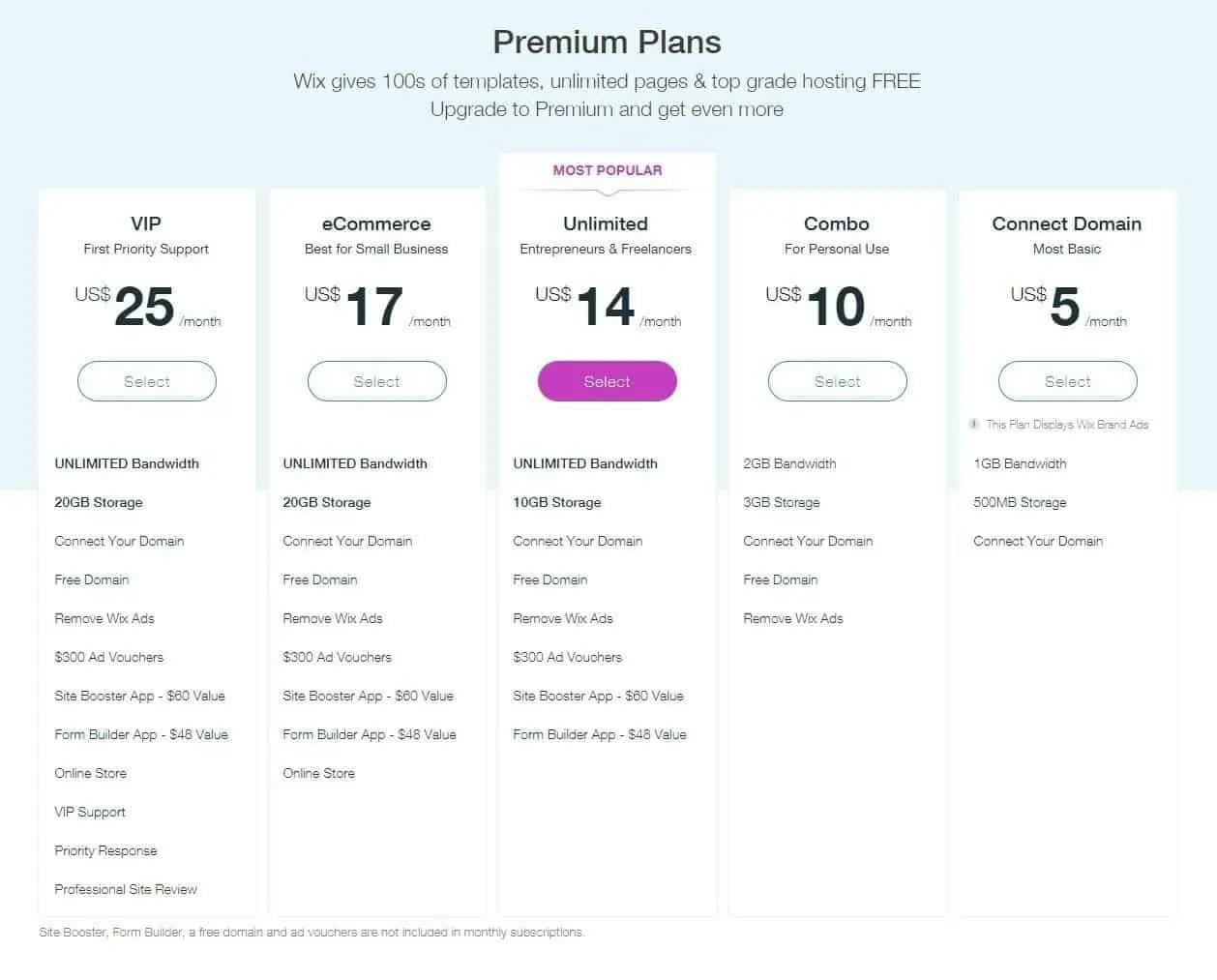 For the reasons I’ve stated above and more, you are not getting what you pay for. Let’s do a comparison between the current Wix price options and my own web hosting services. As of the current date, March 23, 2018 these are the prices for each Wix Premium Plan: