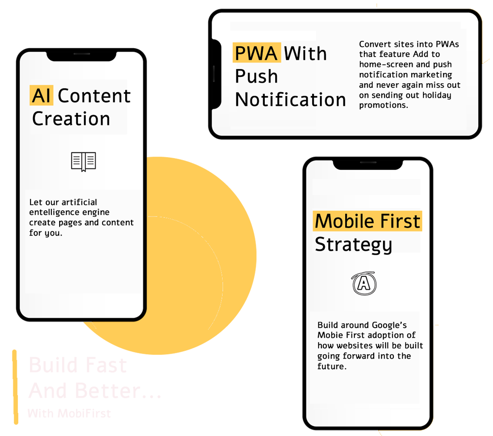 Our Mobile-First builder, powered by advanced AI, enables you to effortlessly create beautiful PWAs and websites optimized for mobile devices.
