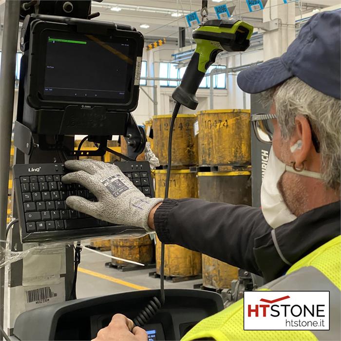 Mounting a large display on board a forklift, moving only the reading optics, is the key to all vehicle solutions, in which various products can be used to achieve the same purpose. What we present is a solution consisting of an Zebra ET51 industrial tablet in Wi-Fi and Bluetooth version ( available with the addition of WWAN radios + GPS ) with display of 8 ” ( available also 10 ” ), mounted on a Gamber & Johnson industrial bracket connected directly to the forklift battery. The bracket is equipped with a key that allows you to lock the Tablet and fix it permanently to the cradle.