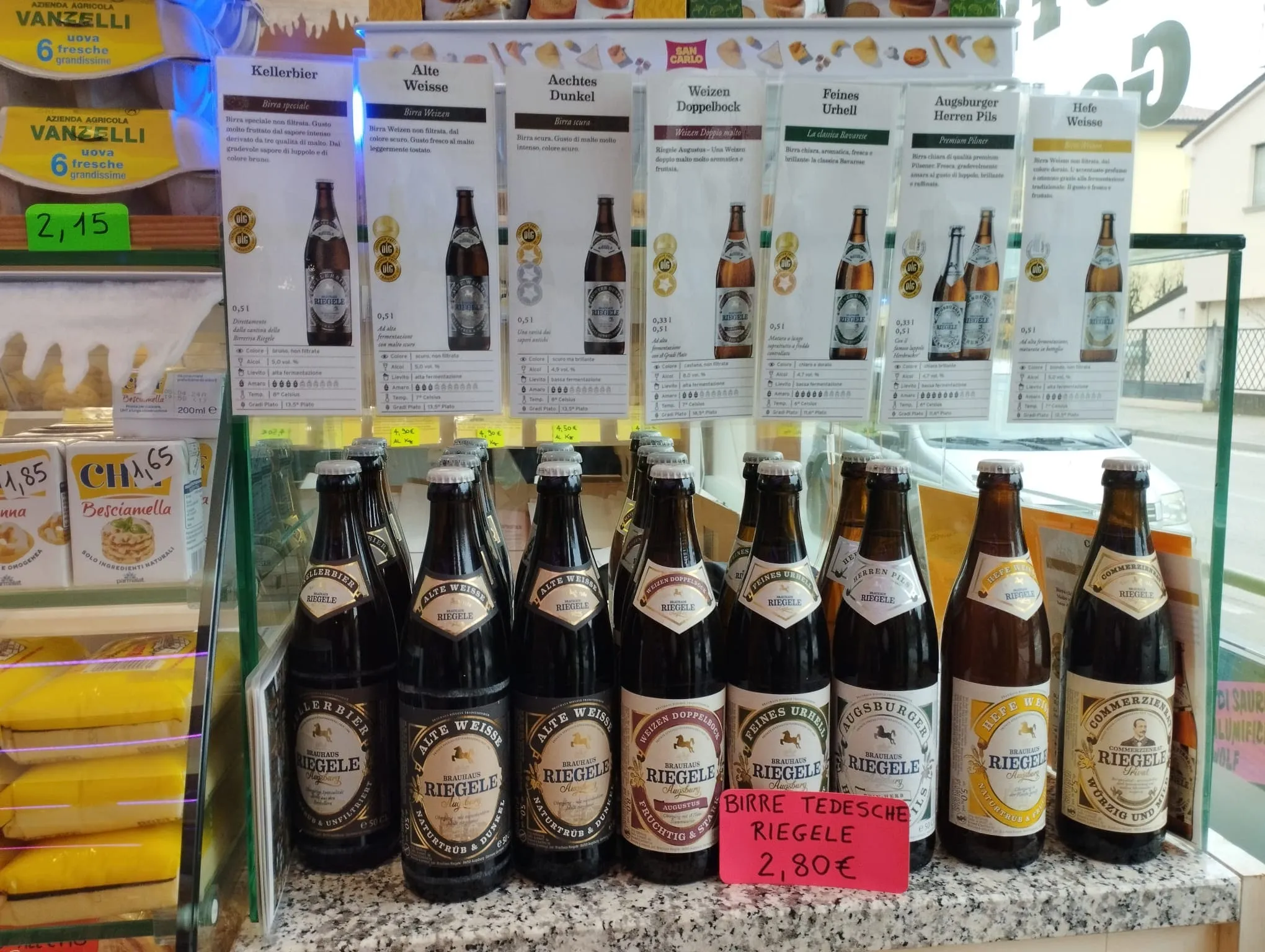 In negozio puoi trovare una selezione di birre del birrificio Riegele..
