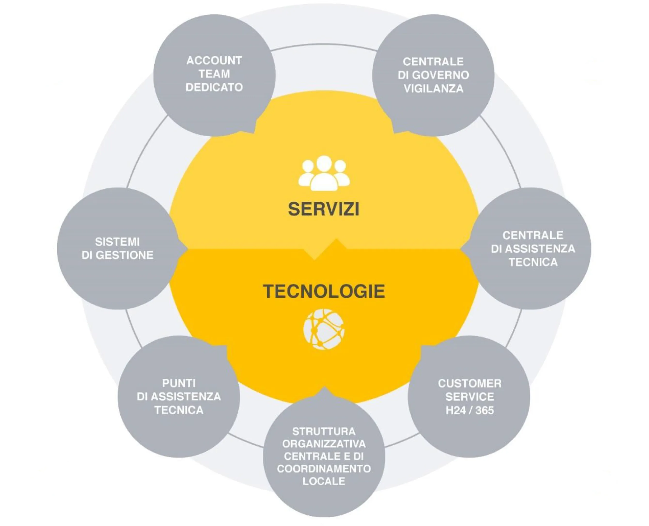 SOS SYSTEM offre un servizio completo, erogando direttamente una parte dei servizi e coordinando ed organizzando la commessa, secondo schemi e procedure consolidati, in maniera che i servizi appaltati vengano forniti secondo gli standard quali-quantitativi predefiniti, attraverso appositi Service Level Agreements, con il Committente.
