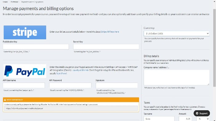 Built in credit card processing with Stripe and PayPal. You can start accepting payments today!