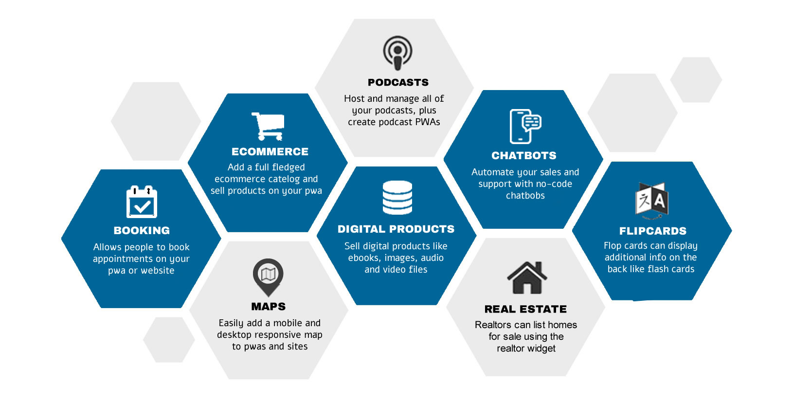 We're always adding new widgets as new innovations become available. Widgets allow you to add all types of features.