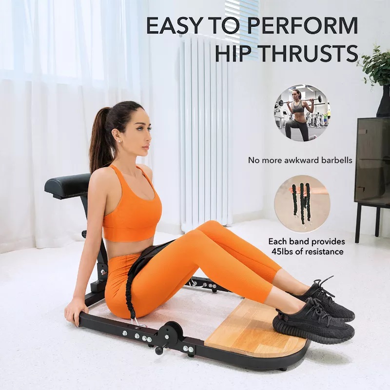 Easily perform Hip Thrusts with our new and improved hip & thigh machine. Comes complete with 3 resistance bands. Each band provides 45lbs of resistance. Extra resistance bands are available. No assembly required.