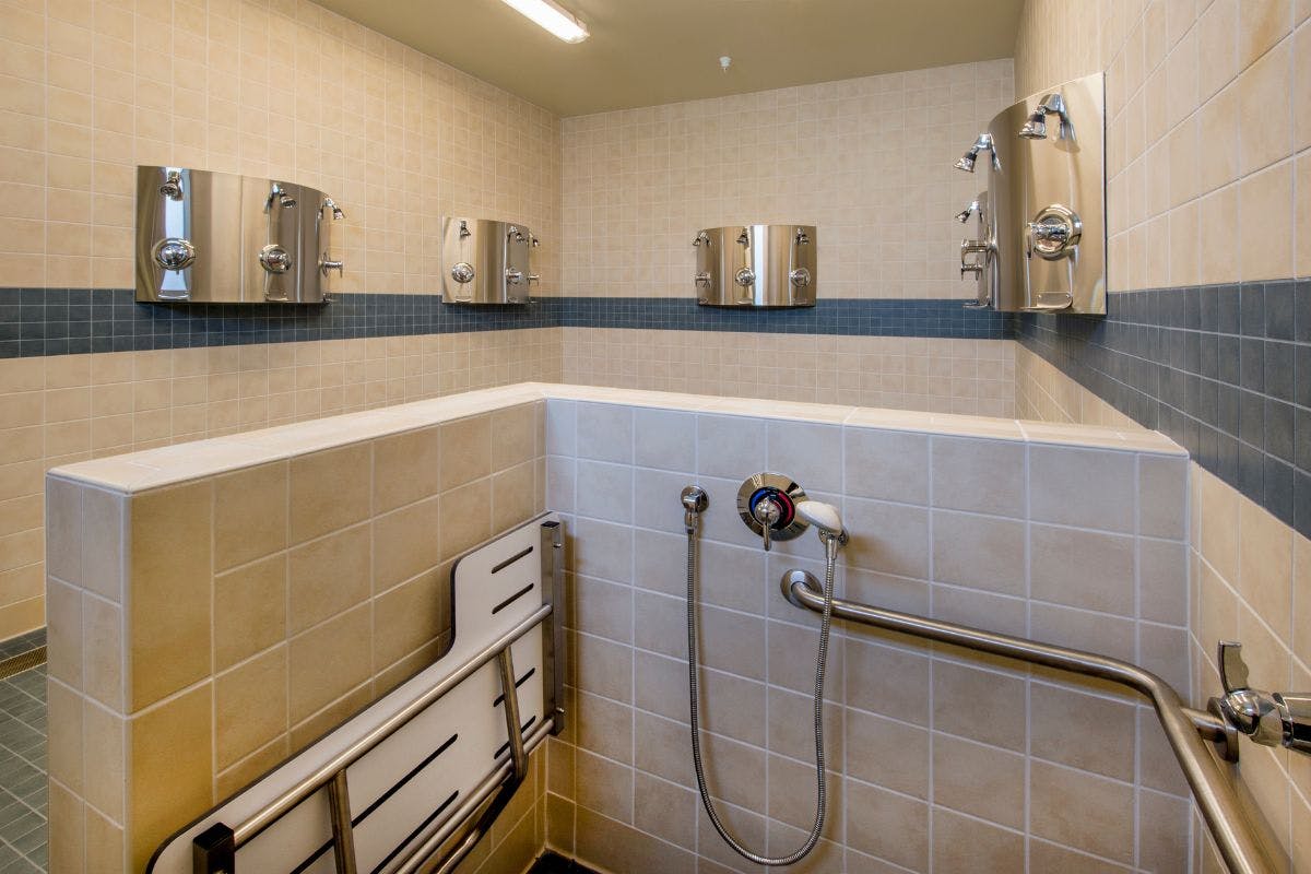 1. Safety Showering may seem like a day to day easy task for most, but for some people showering is a daunting part of their day. Falls, Slips, and injury are a major concern for elderly and handicap individuals getting in and out of the shower. An ADA shower helps decrease the chances of injury with different safety components added with Grab Bars, Seats, Hand Wands, Low or no threshold, and non-slip floors among a few of those components.