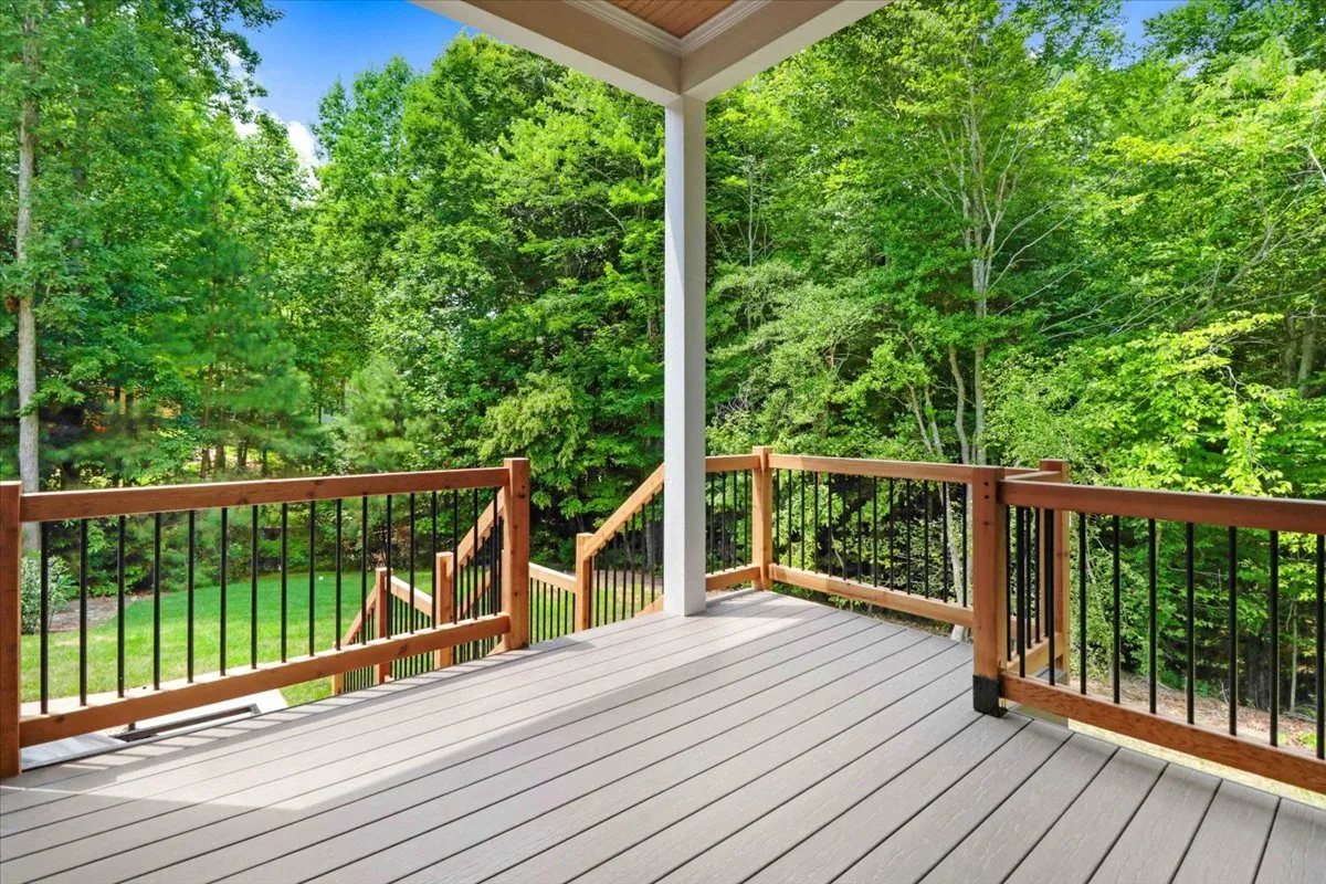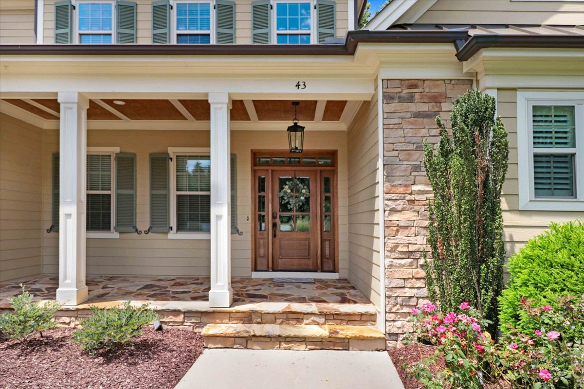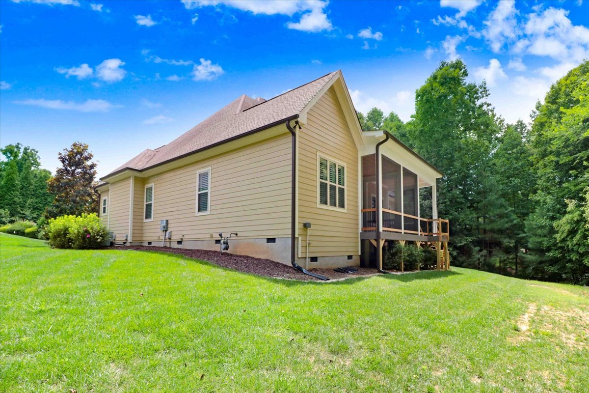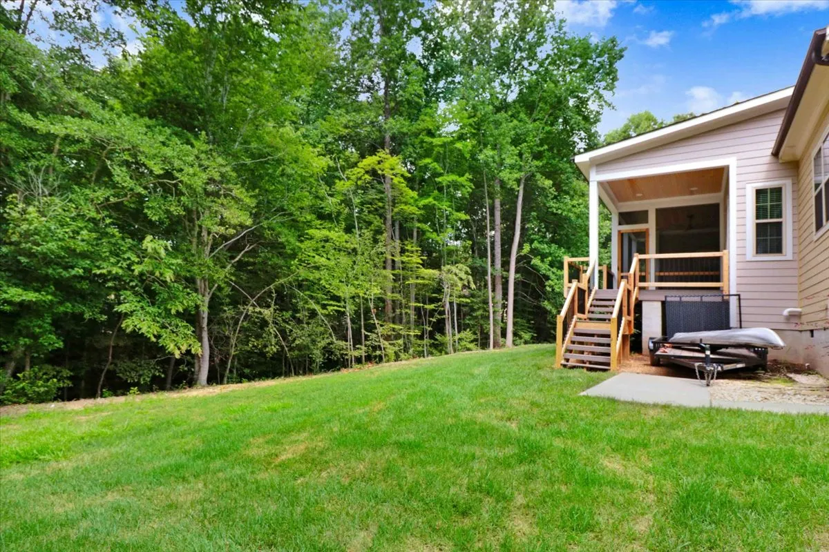 Enjoy peaceful mornings or relaxing evenings on your inviting front porch or screened-in porch, overlooking the beautifully landscaped yard and wooded backdrop.