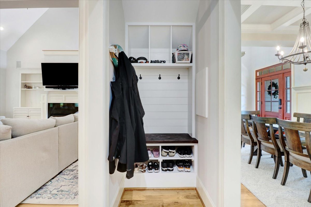 Functional and Stylish: A dedicated drop zone was added inside the garage door for $3k of added convenience and organization.